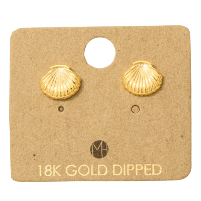 Gold Dipped Clam Shell Stud Earrings