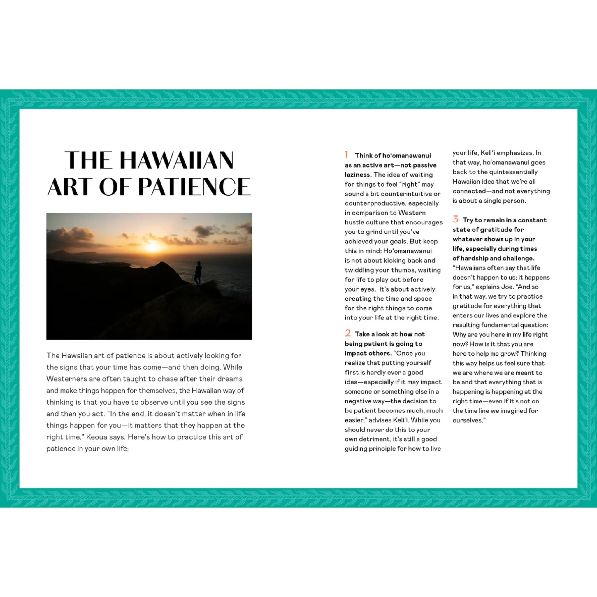 ALOHA (love) • 'ĀINA (land) • MO'OLELO (stories) • 'OHANA (family) DISCOVER FOUR FOUNDATIONS OF HAWAIIAN LIVING FOR A PEACEFUL AND BALANCED LIFE.