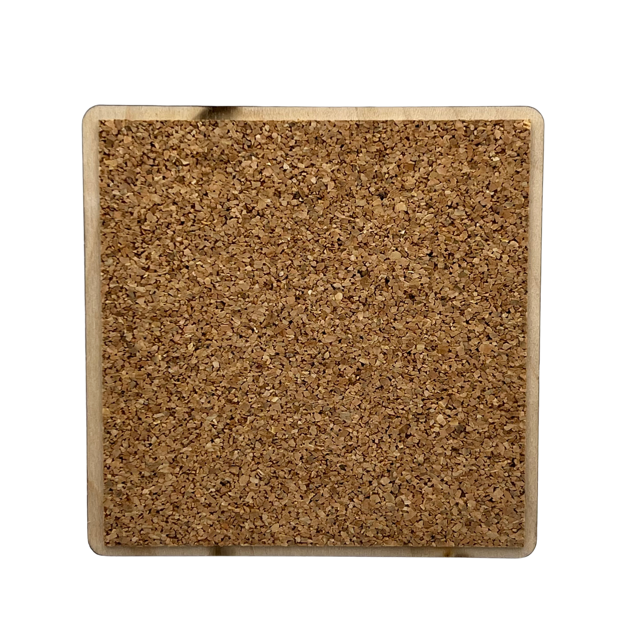 Made of 1/4" American made maple plywood, each coaster measures 3.75" x 3.75" and has a cork back to prevent scuffing and slippage.